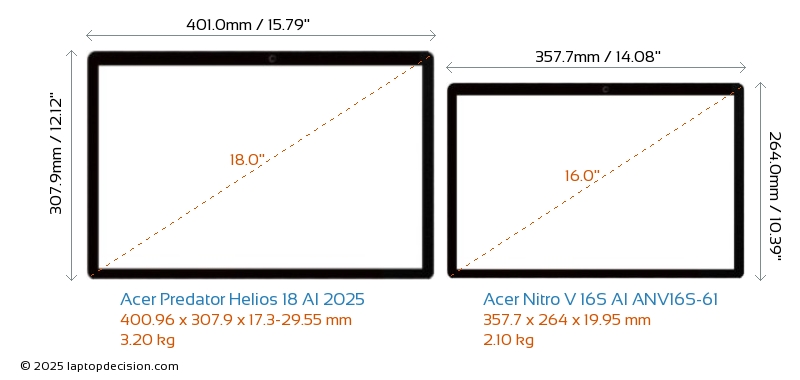 HDMIBoth Predator Helios 18 AI 2025 and Nitro V 16S AI ANV16S-61 feature an HDMI port (1x HDMI 2.1) for connecting to external monitors.