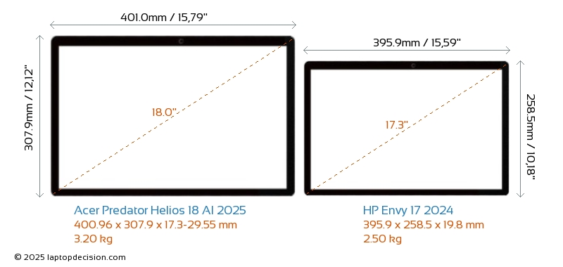 HDMIBoth Predator Helios 18 AI 2025 and Envy 17 2024 feature an HDMI port (1x HDMI 2.1) for connecting to external monitors.