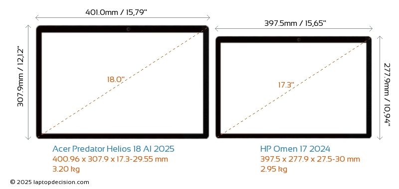HDMIBoth Predator Helios 18 AI 2025 and Omen 17 2024 feature an HDMI port (1x HDMI 2.1) for connecting to external monitors.
