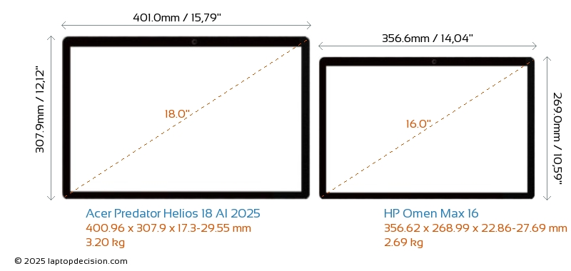 HDMIBoth Predator Helios 18 AI 2025 and Omen Max 16 feature an HDMI port (1x HDMI 2.1) for connecting to external monitors.