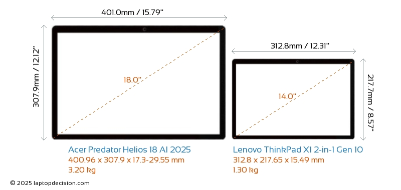 HDMIBoth Predator Helios 18 AI 2025 and ThinkPad X1 2-in-1 Gen 10 feature an HDMI port (1x HDMI 2.1) for connecting to external monitors.