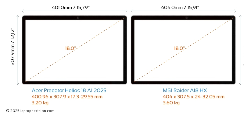 HDMIBoth Predator Helios 18 AI 2025 and Raider A18 HX feature an HDMI port (1x HDMI 2.1) for connecting to external monitors.