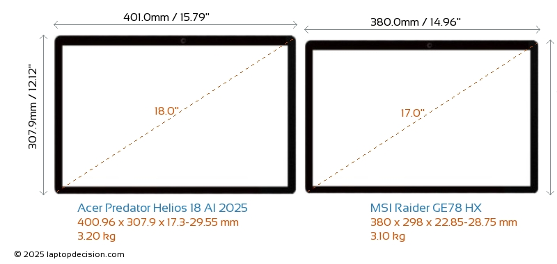 USBBoth Predator Helios 18 AI 2025 and Raider GE78 HX have USB-A ports. Predator Helios 18 AI 2025 has 3x USB 3.2 USB-A ports, while Raider GE78 HX has 2x USB 3.2 USB-A ports.Both Predator Helios 18 AI 2025 and Raider GE78 HX have USB Type-C ports. Predator Helios 18 AI 2025 has 2x USB 4.0 USB Type-C ports, while Raider GE78 HX has 3x USB 4.0 USB Type-C ports.