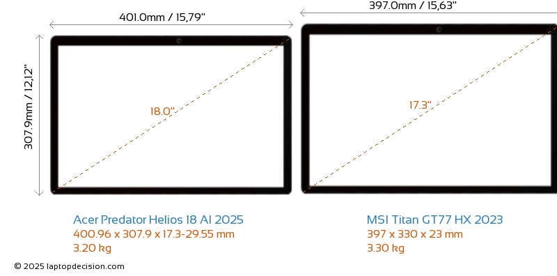 HDMIBoth Predator Helios 18 AI 2025 and Titan GT77 HX 2023 feature an HDMI port (1x HDMI 2.1) for connecting to external monitors.