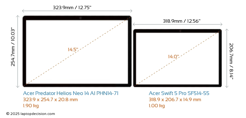 SD Card Reader Predator Helios Neo 14 AI PHN14-71 is equipped with an SD Card Reader for easy access to memory cards. Swift 5 Pro SF514-55 does not have an SD Card Reader.