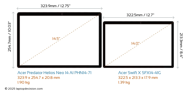 SD Card Reader Predator Helios Neo 14 AI PHN14-71 is equipped with an SD Card Reader for easy access to memory cards. Swift X SFX14-41G does not have an SD Card Reader.