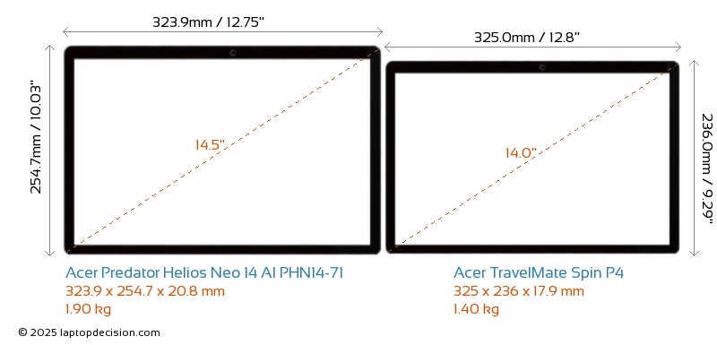 HDMIBoth Predator Helios Neo 14 AI PHN14-71 and TravelMate Spin P4 feature an HDMI port. Predator Helios Neo 14 AI PHN14-71 offers 1x HDMI 2.1, while TravelMate Spin P4 offers 1x HDMI 2.0.