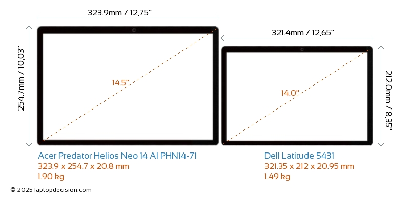 ThunderboltBoth Predator Helios Neo 14 AI PHN14-71 and Latitude 5431 are equipped with Thunderbolt 4 ports.