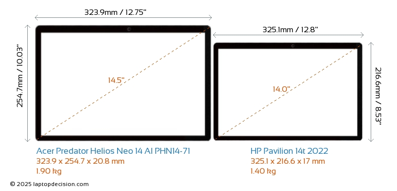 HDMIBoth Predator Helios Neo 14 AI PHN14-71 and Pavilion 14t 2022 feature an HDMI port (1x HDMI 2.1) for connecting to external monitors.