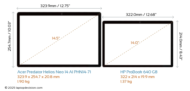 HDMIBoth Predator Helios Neo 14 AI PHN14-71 and ProBook 640 G8 feature an HDMI port. Predator Helios Neo 14 AI PHN14-71 offers 1x HDMI 2.1, while ProBook 640 G8 offers 1x HDMI 1.4.