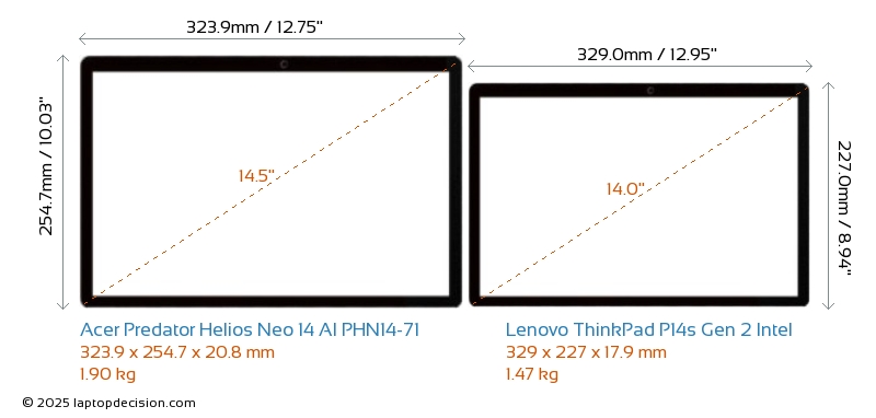 ThunderboltBoth Predator Helios Neo 14 AI PHN14-71 and ThinkPad P14s Gen 2 Intel are equipped with Thunderbolt 4 ports.