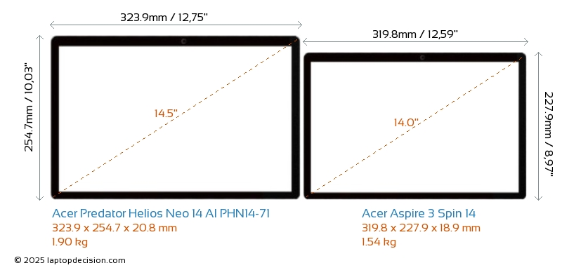 HDMIBoth Predator Helios Neo 14 AI PHN14-71 and Aspire 3 Spin 14 feature an HDMI port (1x HDMI 2.1) for connecting to external monitors.