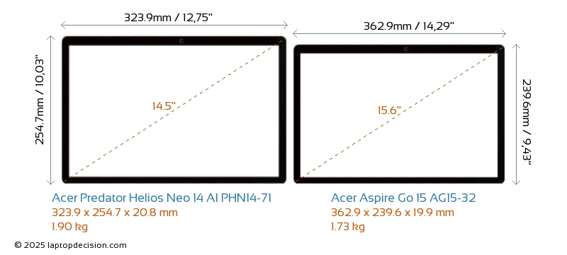HDMIBoth Predator Helios Neo 14 AI PHN14-71 and Aspire Go 15 AG15-32 feature an HDMI port (1x HDMI 2.1) for connecting to external monitors.
