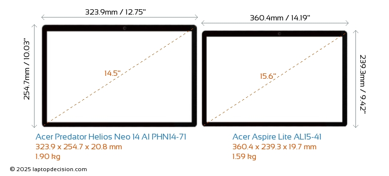 HDMIBoth Predator Helios Neo 14 AI PHN14-71 and Aspire Lite AL15-41 feature an HDMI port. Predator Helios Neo 14 AI PHN14-71 offers 1x HDMI 2.1, while Aspire Lite AL15-41 offers 1x HDMI 1.4.