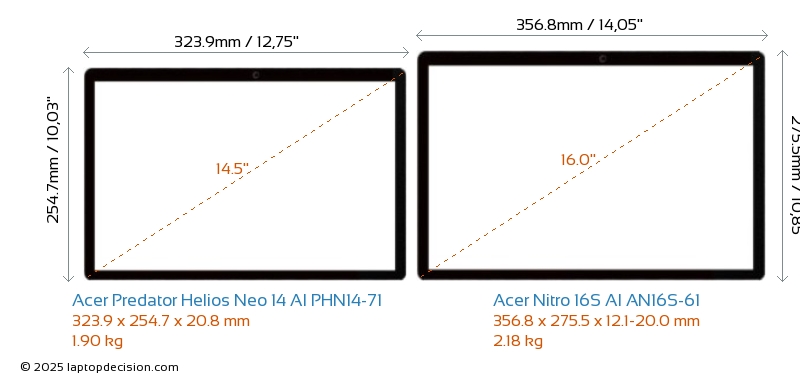 HDMIBoth Predator Helios Neo 14 AI PHN14-71 and Nitro 16S AI AN16S-61 feature an HDMI port (1x HDMI 2.1) for connecting to external monitors.
