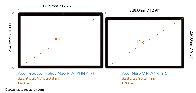 HDMIBoth Predator Helios Neo 14 AI PHN14-71 and Nitro V 14 ANV14-61 feature an HDMI port (1x HDMI 2.1) for connecting to external monitors.