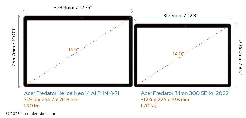HDMIBoth Predator Helios Neo 14 AI PHN14-71 and Predator Triton 300 SE 14 2022 feature an HDMI port (1x HDMI 2.1) for connecting to external monitors.