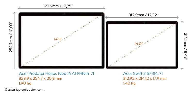 HDMIBoth Predator Helios Neo 14 AI PHN14-71 and Swift 3 SF314-71 feature an HDMI port (1x HDMI 2.1) for connecting to external monitors.