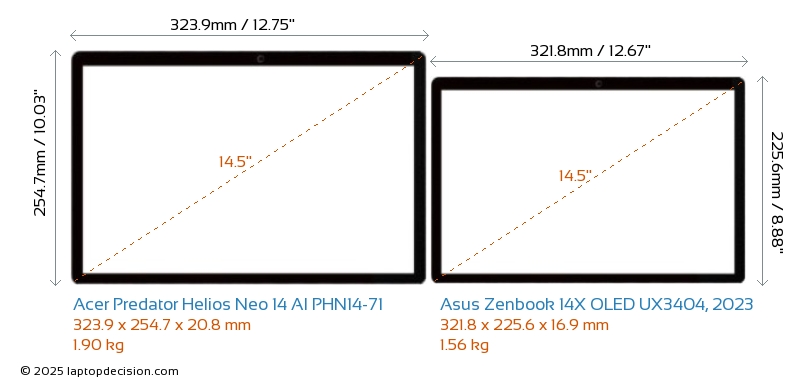 USBBoth Predator Helios Neo 14 AI PHN14-71 and Zenbook 14X OLED UX3404, 2023 have USB-A ports. Predator Helios Neo 14 AI PHN14-71 has 2x USB 3.2 USB-A ports, while Zenbook 14X OLED UX3404, 2023 has 1x USB 3.2 USB-A ports.Both Predator Helios Neo 14 AI PHN14-71 and Zenbook 14X OLED UX3404, 2023 have USB Type-C ports. Predator Helios Neo 14 AI PHN14-71 has 2x USB 3.2 USB Type-C ports, while Zenbook 14X OLED UX3404, 2023 has 2x USB 4.0 USB Type-C ports.