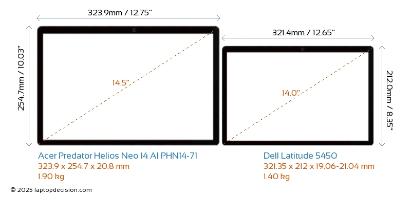 HDMIBoth Predator Helios Neo 14 AI PHN14-71 and Latitude 5450 feature an HDMI port (1x HDMI 2.1) for connecting to external monitors.