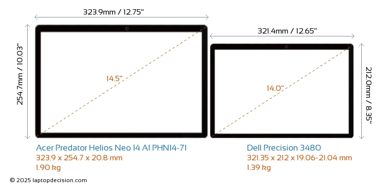 HDMIBoth Predator Helios Neo 14 AI PHN14-71 and Precision 3480 feature an HDMI port. Predator Helios Neo 14 AI PHN14-71 offers 1x HDMI 2.1, while Precision 3480 offers 1x HDMI 2.0.