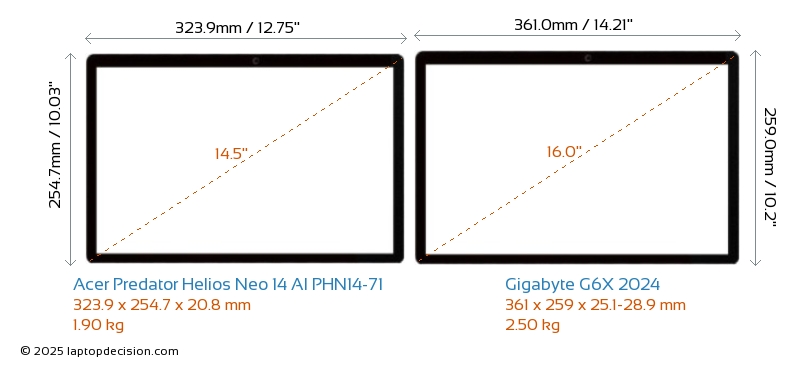 HDMIBoth Predator Helios Neo 14 AI PHN14-71 and G6X 2024 feature an HDMI port (1x HDMI 2.1) for connecting to external monitors.