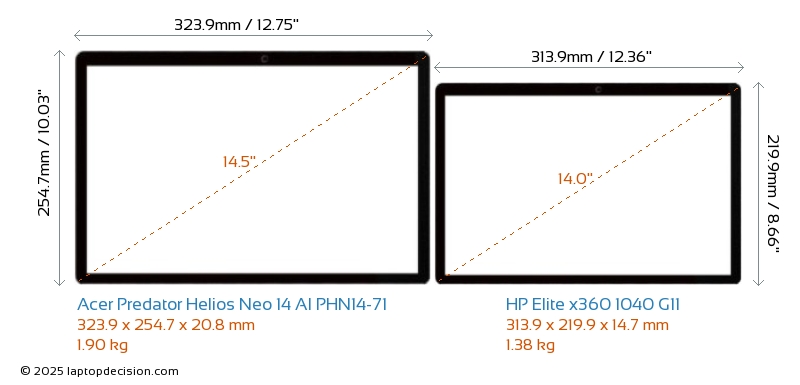 HDMIBoth Predator Helios Neo 14 AI PHN14-71 and Elite x360 1040 G11 feature an HDMI port (1x HDMI 2.1) for connecting to external monitors.