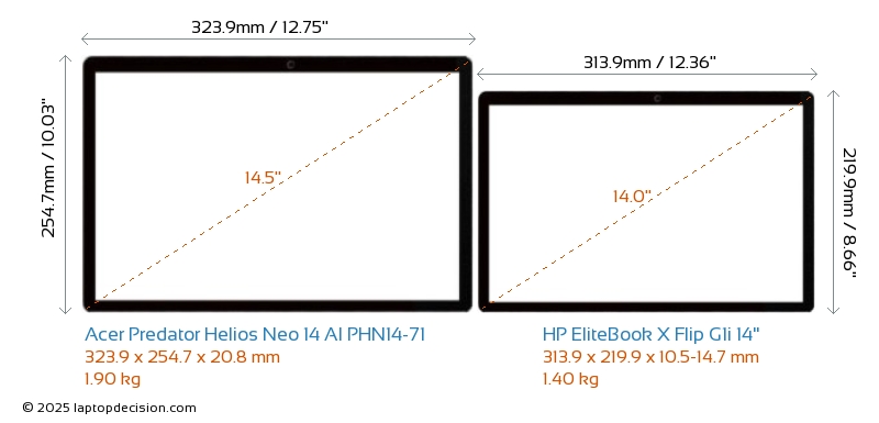 HDMIBoth Predator Helios Neo 14 AI PHN14-71 and EliteBook X Flip G1i 14" feature an HDMI port (1x HDMI 2.1) for connecting to external monitors.