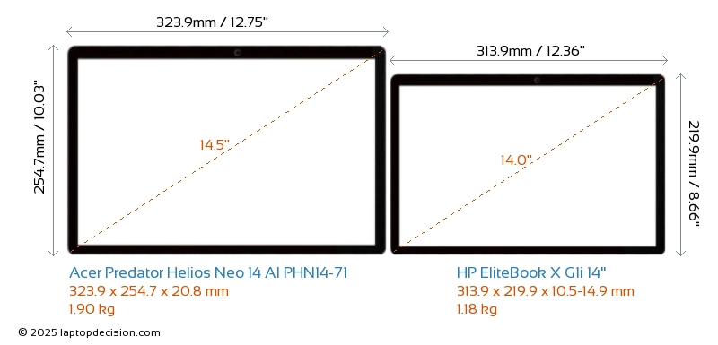 HDMIBoth Predator Helios Neo 14 AI PHN14-71 and EliteBook X G1i 14" feature an HDMI port (1x HDMI 2.1) for connecting to external monitors.
