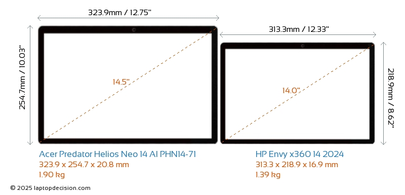 HDMIBoth Predator Helios Neo 14 AI PHN14-71 and Envy x360 14 2024 feature an HDMI port (1x HDMI 2.1) for connecting to external monitors.