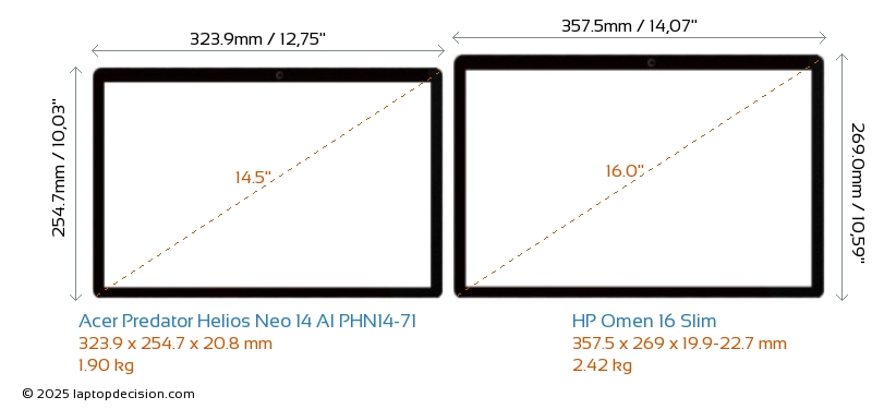 HDMIBoth Predator Helios Neo 14 AI PHN14-71 and Omen 16 Slim feature an HDMI port (1x HDMI 2.1) for connecting to external monitors.