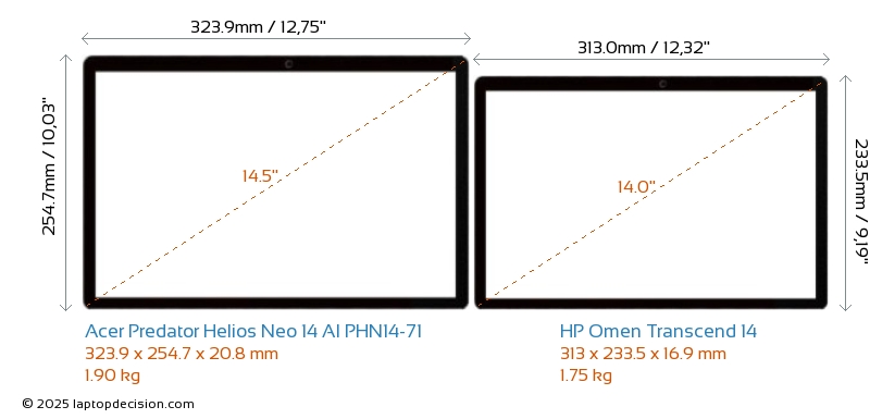 HDMIBoth Predator Helios Neo 14 AI PHN14-71 and Omen Transcend 14 feature an HDMI port (1x HDMI 2.1) for connecting to external monitors.