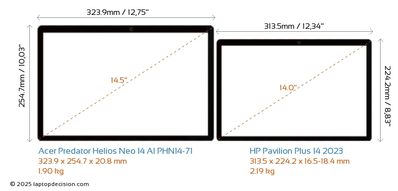 HDMIBoth Predator Helios Neo 14 AI PHN14-71 and Pavilion Plus 14 2023 feature an HDMI port (1x HDMI 2.1) for connecting to external monitors.