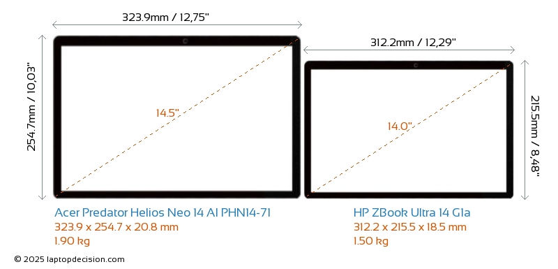 HDMIBoth Predator Helios Neo 14 AI PHN14-71 and ZBook Ultra 14 G1a feature an HDMI port (1x HDMI 2.1) for connecting to external monitors.