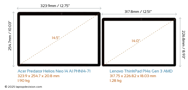 USBBoth Predator Helios Neo 14 AI PHN14-71 and ThinkPad P14s Gen 3 AMD feature 2x USB 3.2 USB-A ports.Both Predator Helios Neo 14 AI PHN14-71 and ThinkPad P14s Gen 3 AMD feature 2x USB 3.2 USB Type-C ports.