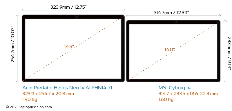 HDMIBoth Predator Helios Neo 14 AI PHN14-71 and Cyborg 14 feature an HDMI port (1x HDMI 2.1) for connecting to external monitors.