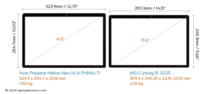 HDMIBoth Predator Helios Neo 14 AI PHN14-71 and Cyborg 15 2025 feature an HDMI port (1x HDMI 2.1) for connecting to external monitors.