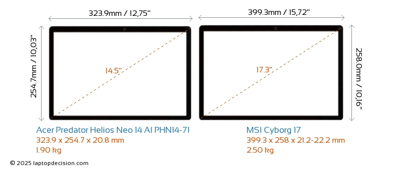 HDMIBoth Predator Helios Neo 14 AI PHN14-71 and Cyborg 17 feature an HDMI port (1x HDMI 2.1) for connecting to external monitors.