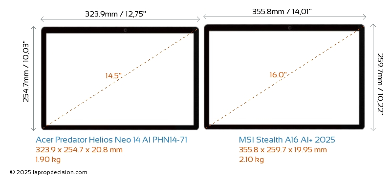 HDMIBoth Predator Helios Neo 14 AI PHN14-71 and Stealth A16 AI+ 2025 feature an HDMI port (1x HDMI 2.1) for connecting to external monitors.