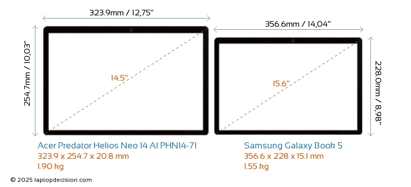 USBBoth Predator Helios Neo 14 AI PHN14-71 and Galaxy Book 5 feature 2x USB 3.2 USB-A ports.Both Predator Helios Neo 14 AI PHN14-71 and Galaxy Book 5 have USB Type-C ports. Predator Helios Neo 14 AI PHN14-71 has 2x USB 3.2 USB Type-C ports, while Galaxy Book 5 has 2x USB 4.0 USB Type-C ports.