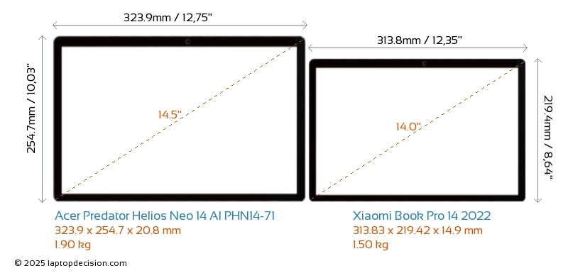 HDMI Predator Helios Neo 14 AI PHN14-71 features an HDMI port (1x HDMI 2.1) for connecting to external monitors. Book Pro 14 2022 does not have an HDMI port.