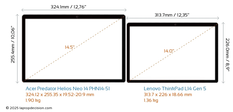 ThunderboltBoth Predator Helios Neo 14 PHN14-51 and ThinkPad L14 Gen 5 are equipped with Thunderbolt 4 ports.