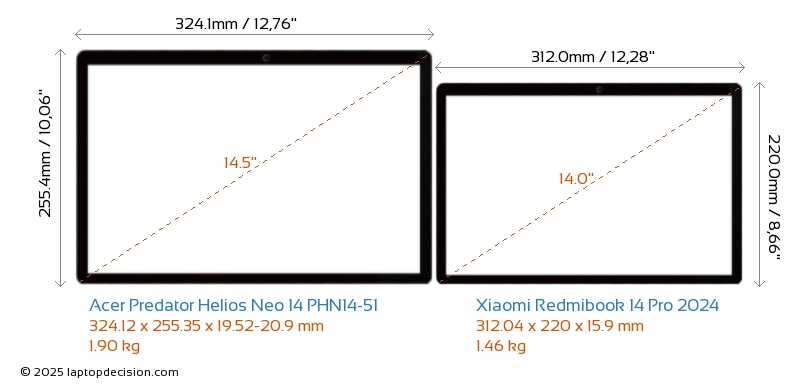 USBBoth Predator Helios Neo 14 PHN14-51 and Redmibook 14 Pro 2024 feature 2x USB 3.2 USB-A ports.Both Predator Helios Neo 14 PHN14-51 and Redmibook 14 Pro 2024 feature 2x USB 3.2 USB Type-C ports.