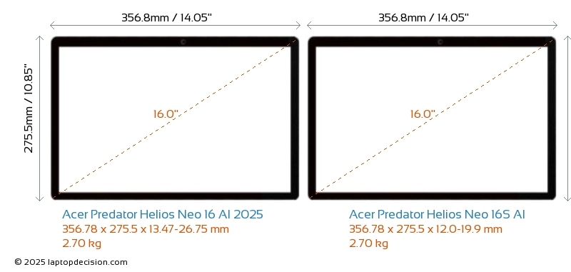 HDMIBoth Predator Helios Neo 16 AI 2025 and Predator Helios Neo 16S AI feature an HDMI port (1x HDMI 2.1) for connecting to external monitors.