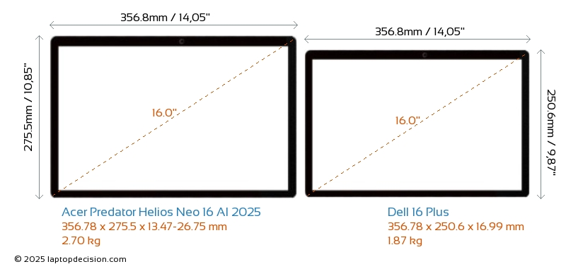 Wifi 16 Plus features a more advanced Wi-Fi standard v7, providing faster and more reliable wireless connections compared to Predator Helios Neo 16 AI 2025 (v6E).