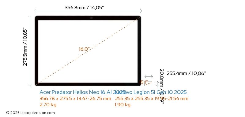 USBBoth Predator Helios Neo 16 AI 2025 and Legion 5i Gen 10 2025 feature 3x USB 3.2 USB-A ports.Both Predator Helios Neo 16 AI 2025 and Legion 5i Gen 10 2025 have USB Type-C ports. Predator Helios Neo 16 AI 2025 has 2x USB 4.0 USB Type-C ports, while Legion 5i Gen 10 2025 has 2x USB 3.2 USB Type-C ports.