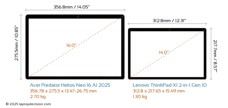 ThunderboltBoth Predator Helios Neo 16 AI 2025 and ThinkPad X1 2-in-1 Gen 10 are equipped with Thunderbolt 4 ports.