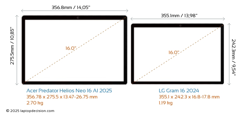 HDMIBoth Predator Helios Neo 16 AI 2025 and Gram 16 2024 feature an HDMI port (1x HDMI 2.1) for connecting to external monitors.