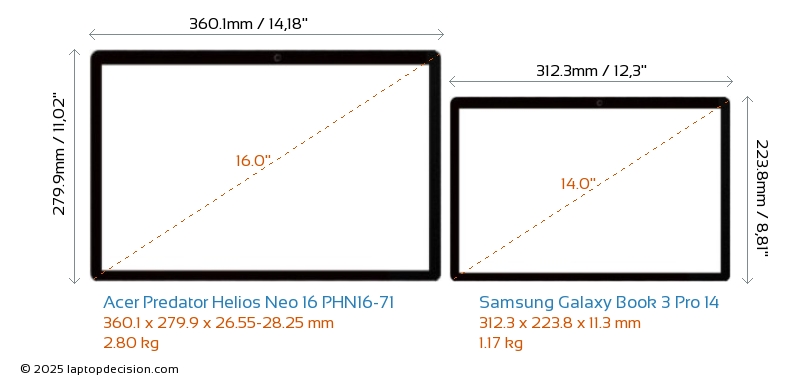 HDMIBoth Predator Helios Neo 16 PHN16-71 and Galaxy Book 3 Pro 14 feature an HDMI port. Predator Helios Neo 16 PHN16-71 offers 1x HDMI 2.1, while Galaxy Book 3 Pro 14 offers 1x HDMI 1.4.