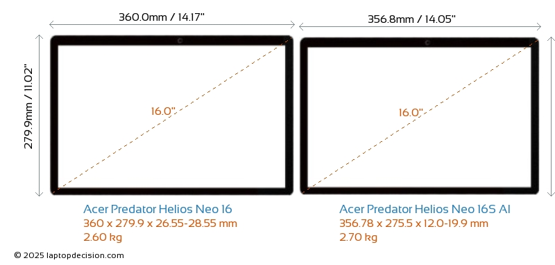 HDMIBoth Predator Helios Neo 16 and Predator Helios Neo 16S AI feature an HDMI port (1x HDMI 2.1) for connecting to external monitors.